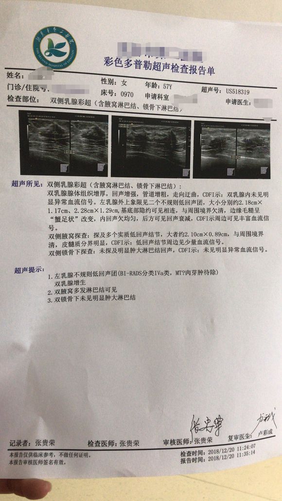 懂的大神们,帮忙看看,我妈妈乳腺癌,报告才出来。彩超的是术前的,病理是术后的。