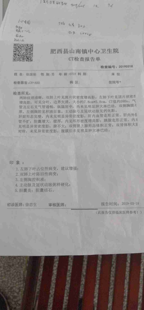 左侧肺癌,又是左侧胸腔积液,胸腔积液里面很有可能会有肿瘤细胞,晚期可能性较大。继续等待病理详细的报告,明确是腺癌还是鳞癌还是小细胞,然后完善基因检测,看看能不能使用靶向药。